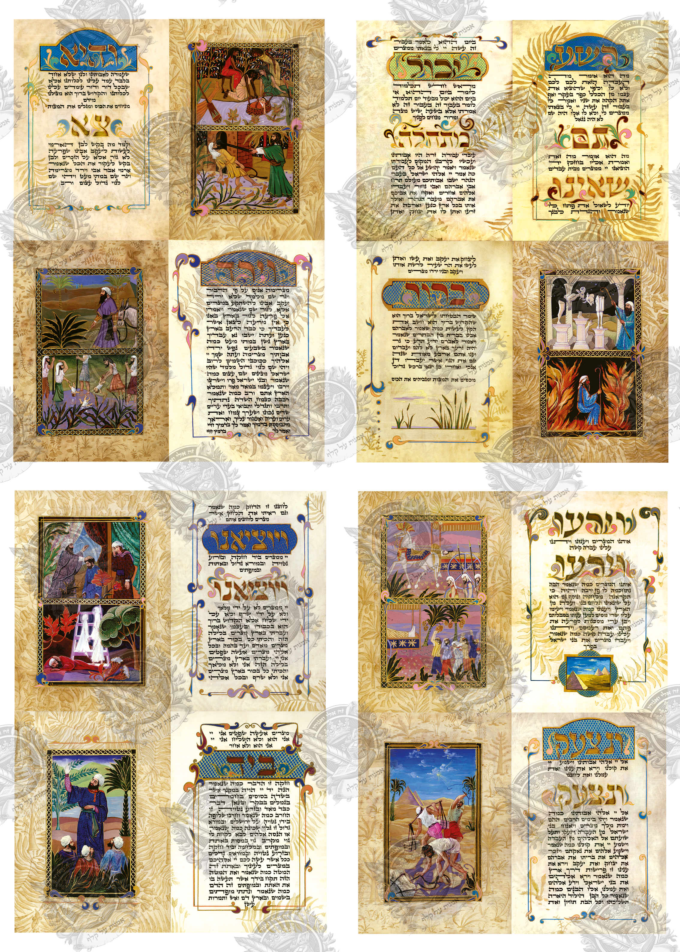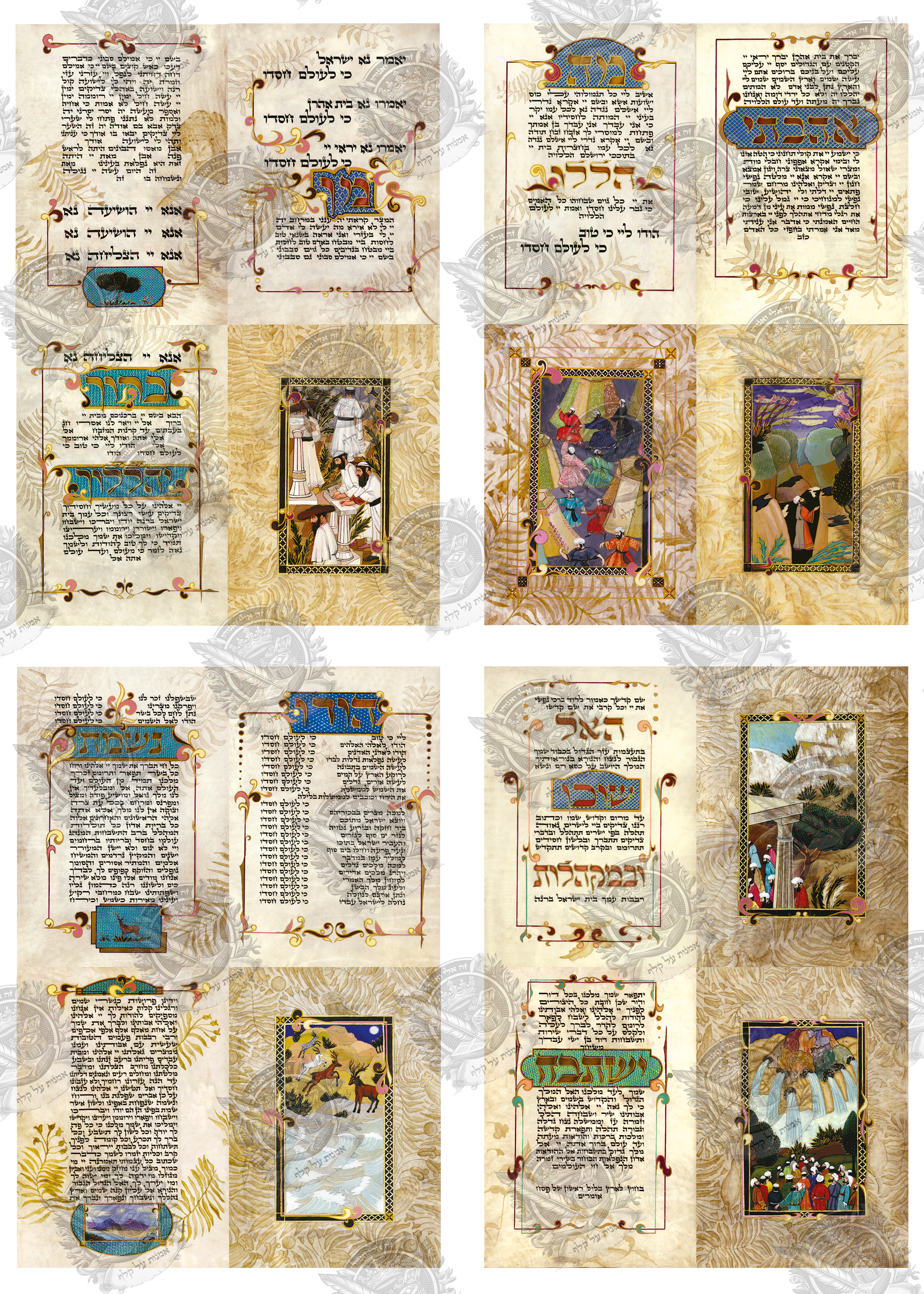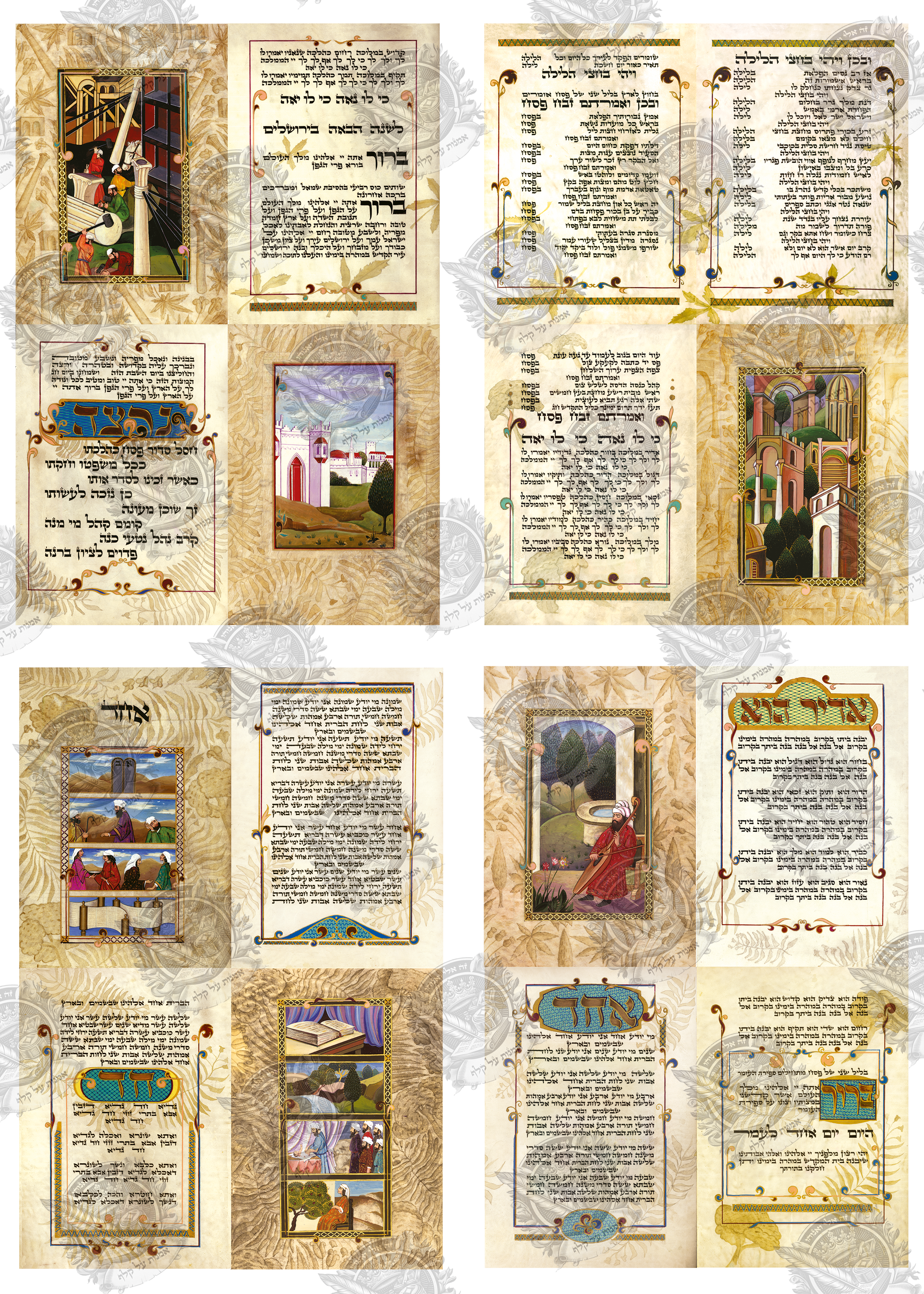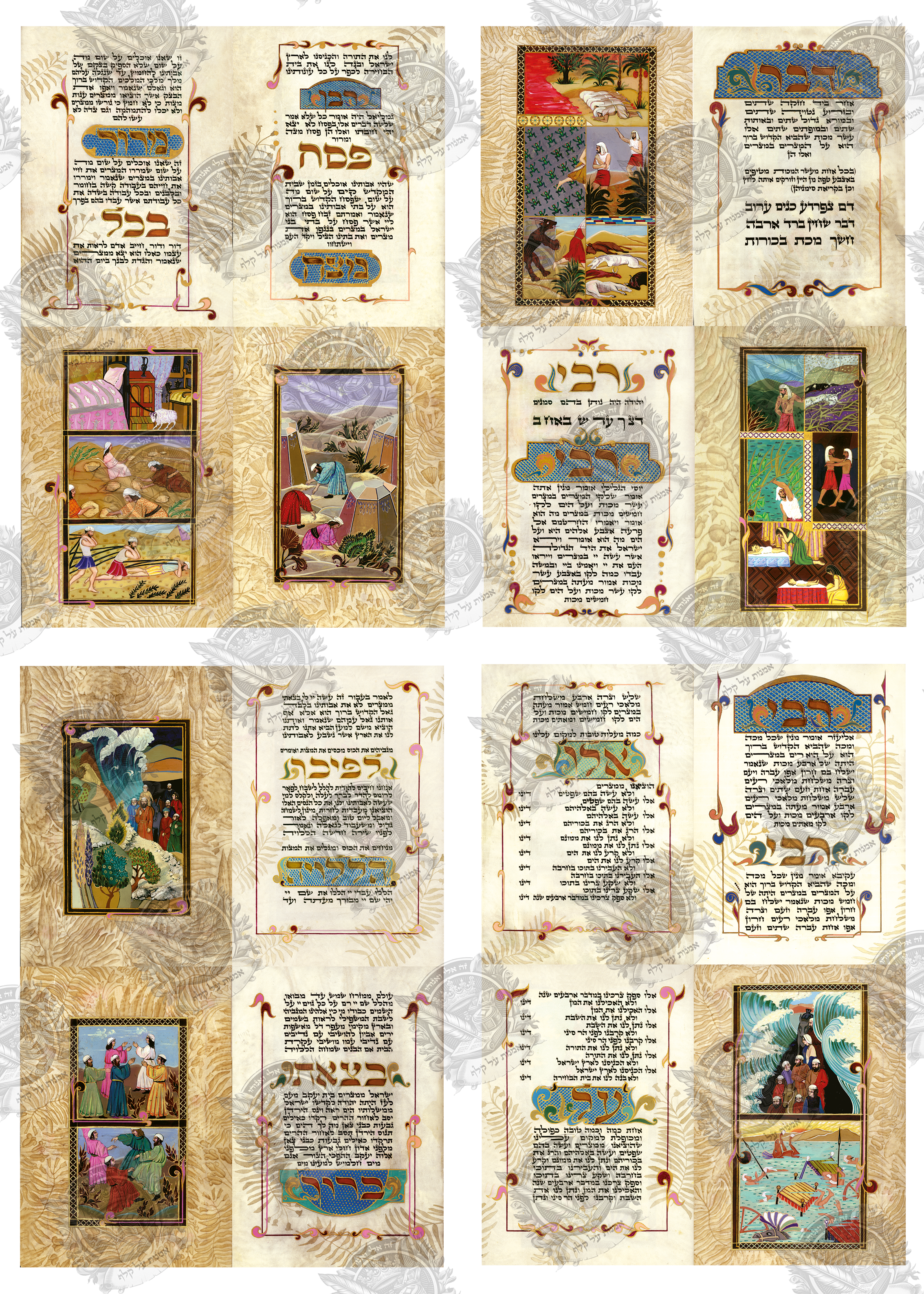 הגדה מאוירת מודפסת על קלף מדהימה ביופייה שתוסיף לליל הסדר שלכם אווירה יהודית מיוחדת.