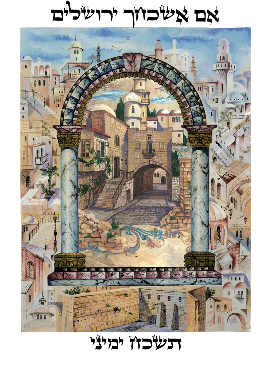 הפסוק "אם אשכחך ירושלים" מופיע בציור ומקנה לציור תוספת רוחנית משמעותית.