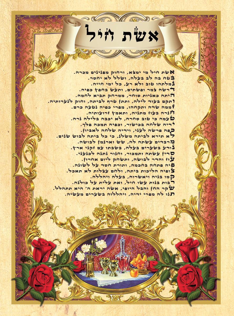 המתנה המושלמת עבור האישה האהובה עליך: מזמור אשת חיל – שולחן שבת. הדפסה על קלף או הדפסה על קנבס, מוצר מרהיב המביע את הערכתך לאישה שאיתך.