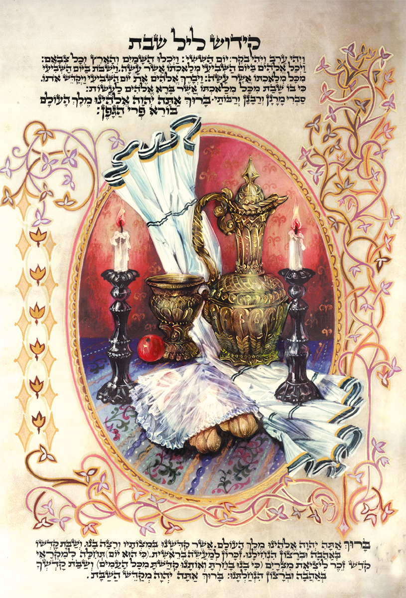 הציור הייחודי של הקידוש מתעד את האווירה החמימה והמיוחדת של ליל שבת.